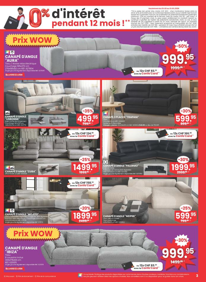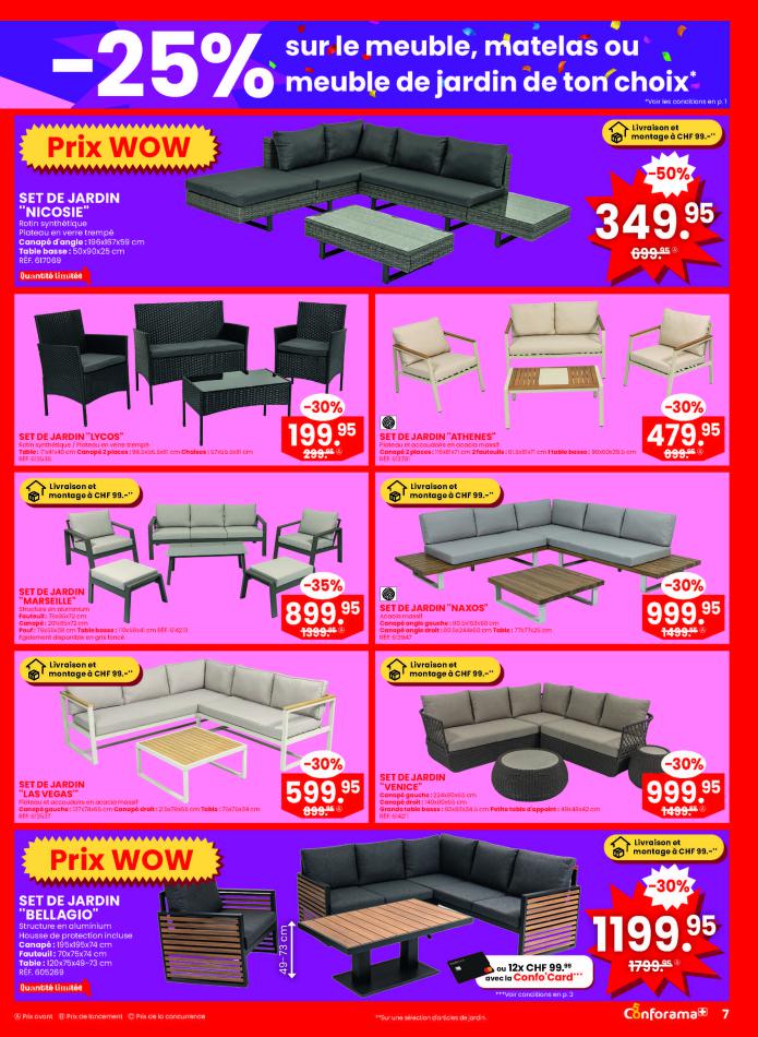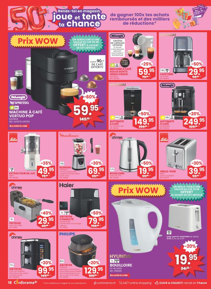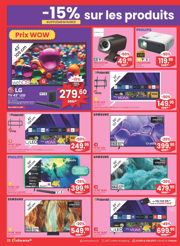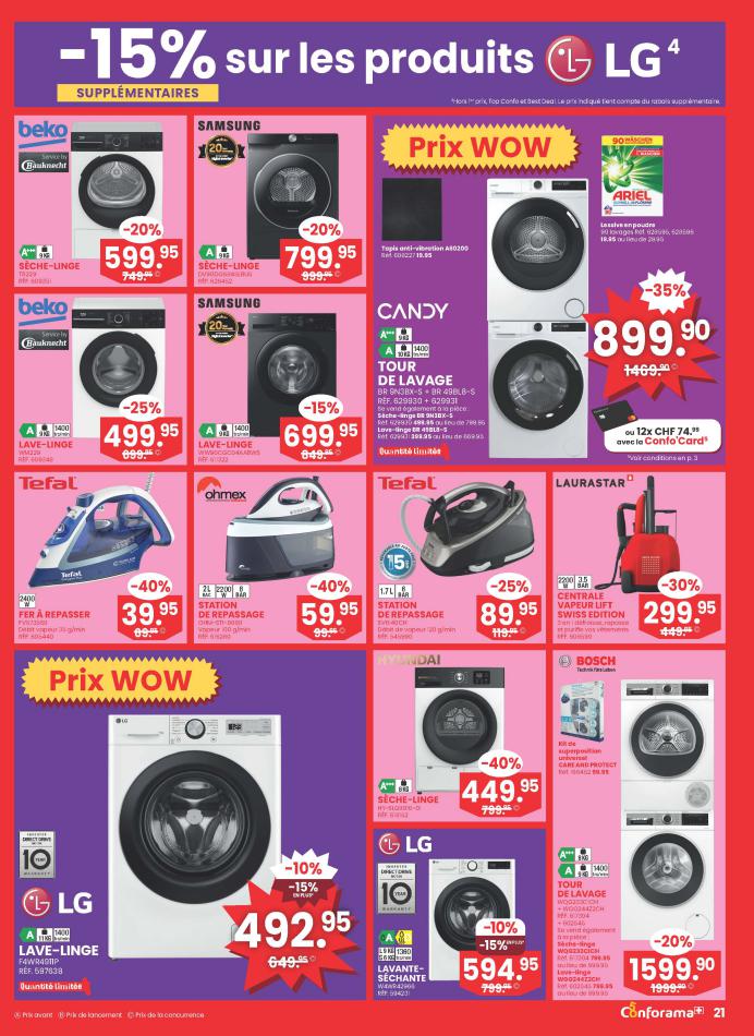 Vous trouverez ici toutes les ⚡ informations concernant les offres Conforama en cours, assortiment ainsi que horaire d'ouverture. Voir folder des promotions valable de 25 mars au 07 avril, vérifier les heures d'ouverture et adresses du réseau des magasins Conforama. Retrouvez les promotions et folders de Conforama maintenant et créez votre sélection des produits. ⚡ Ne ratez aucune bonne affaire et préparez vos achats en ligne. Faites vos économies pendant toute l'année et restez informé des dernières offres et remises chez Conforama.