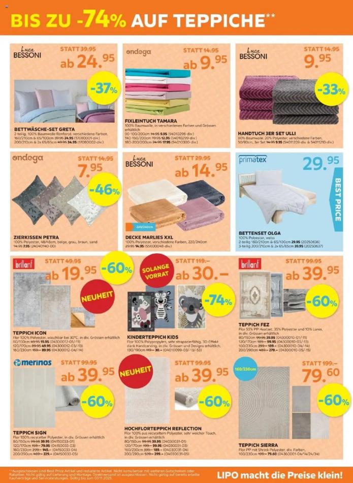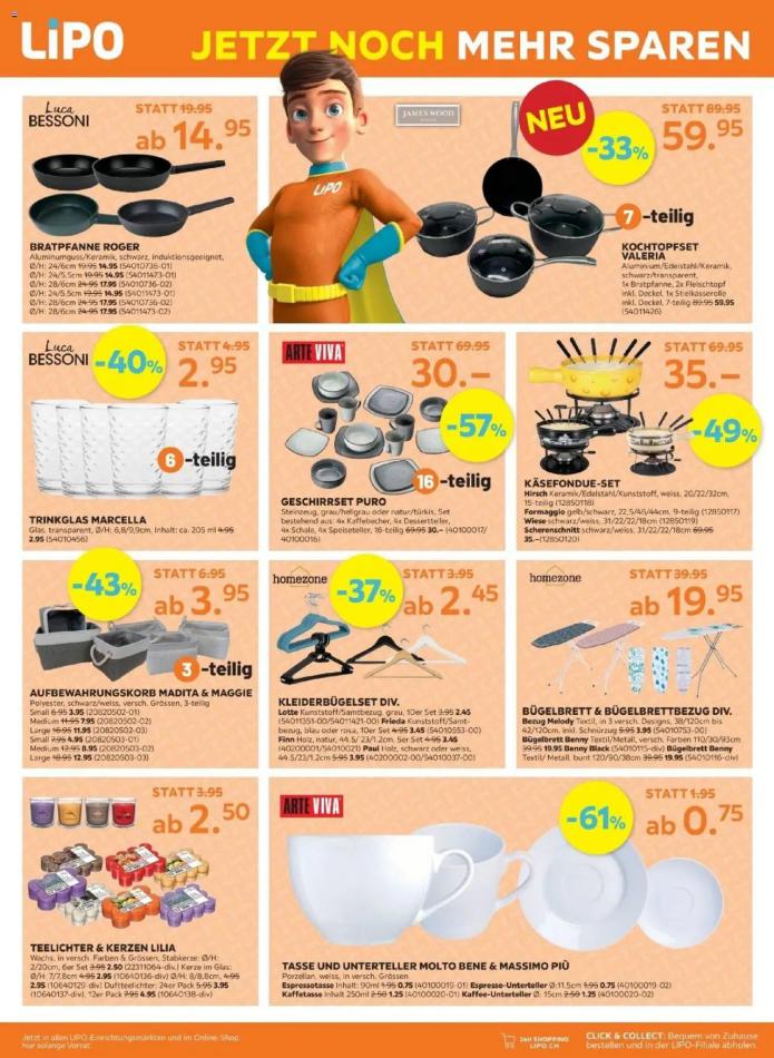 Vous trouverez ici toutes les ⚡ informations concernant les offres Lipo en cours, assortiment ainsi que horaire d'ouverture. Voir folder des promotions valable de 22 octobre au 03 novembre, vérifier les heures d'ouverture et adresses du réseau des magasins Lipo. Retrouvez les promotions et folders de Lipo maintenant et créez votre sélection des produits. ⚡ Ne ratez aucune bonne affaire et préparez vos achats en ligne. Faites vos économies pendant toute l'année et restez informé des dernières offres et remises chez Lipo.