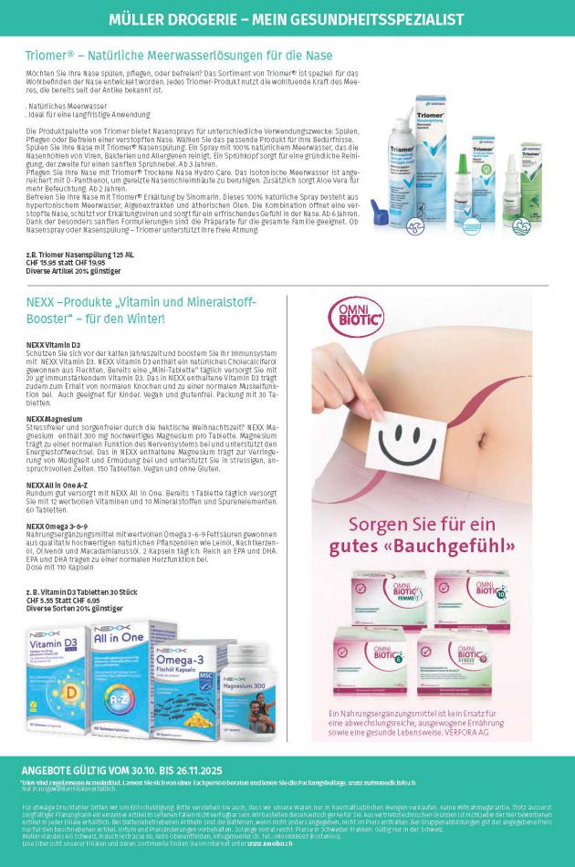 Vous trouverez ici toutes les ⚡ informations concernant les offres Müller en cours, assortiment ainsi que horaire d'ouverture. Voir folder des promotions valable de 30 octobre au 26 novembre, vérifier les heures d'ouverture et adresses du réseau des magasins Müller. Retrouvez les promotions et folders de Müller maintenant et créez votre sélection des produits. ⚡ Ne ratez aucune bonne affaire et préparez vos achats en ligne. Faites vos économies pendant toute l'année et restez informé des dernières offres et remises chez Müller.