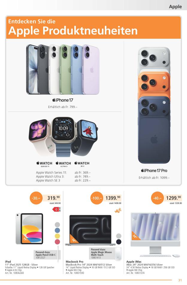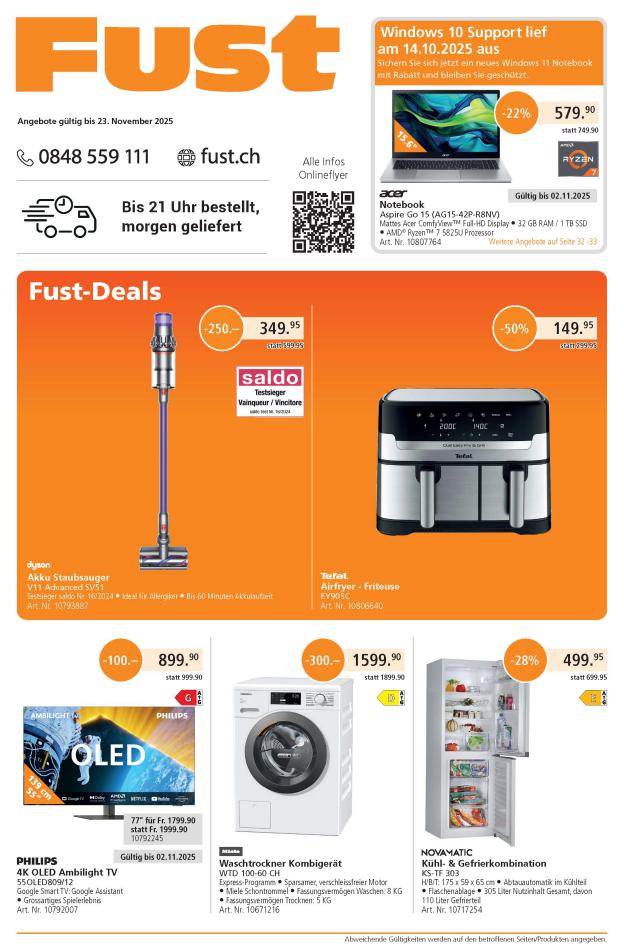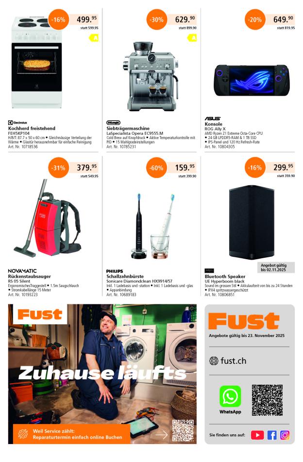 Vous trouverez ici toutes les ⚡ informations concernant les offres Fust en cours, assortiment ainsi que horaire d'ouverture. Voir folder des promotions valable de 24 octobre au 23 novembre, vérifier les heures d'ouverture et adresses du réseau des magasins Fust. Retrouvez les promotions et folders de Fust maintenant et créez votre sélection des produits. ⚡ Ne ratez aucune bonne affaire et préparez vos achats en ligne. Faites vos économies pendant toute l'année et restez informé des dernières offres et remises chez Fust.