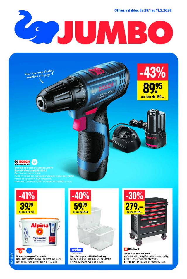 Vous trouverez ici toutes les ⚡ informations concernant les offres Jumbo en cours, assortiment ainsi que horaire d'ouverture. Voir folder des promotions valable de 29 janvier au 11 février, vérifier les heures d'ouverture et adresses du réseau des magasins Jumbo. Retrouvez les promotions et folders de Jumbo maintenant et créez votre sélection des produits. ⚡ Ne ratez aucune bonne affaire et préparez vos achats en ligne. Faites vos économies pendant toute l'année et restez informé des dernières offres et remises chez Jumbo.