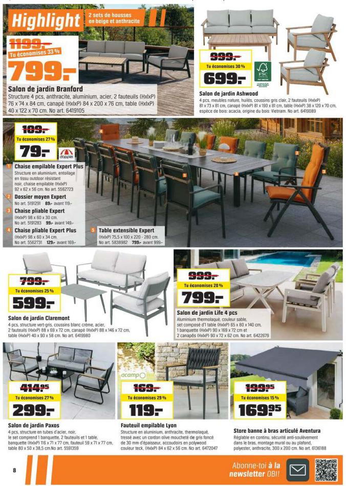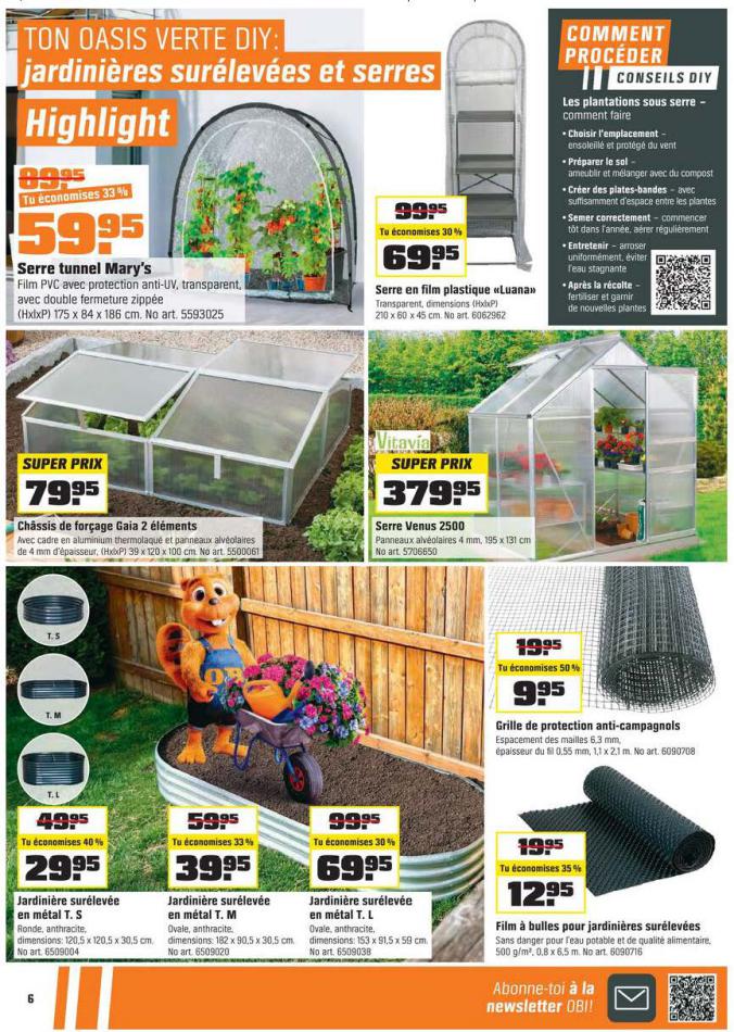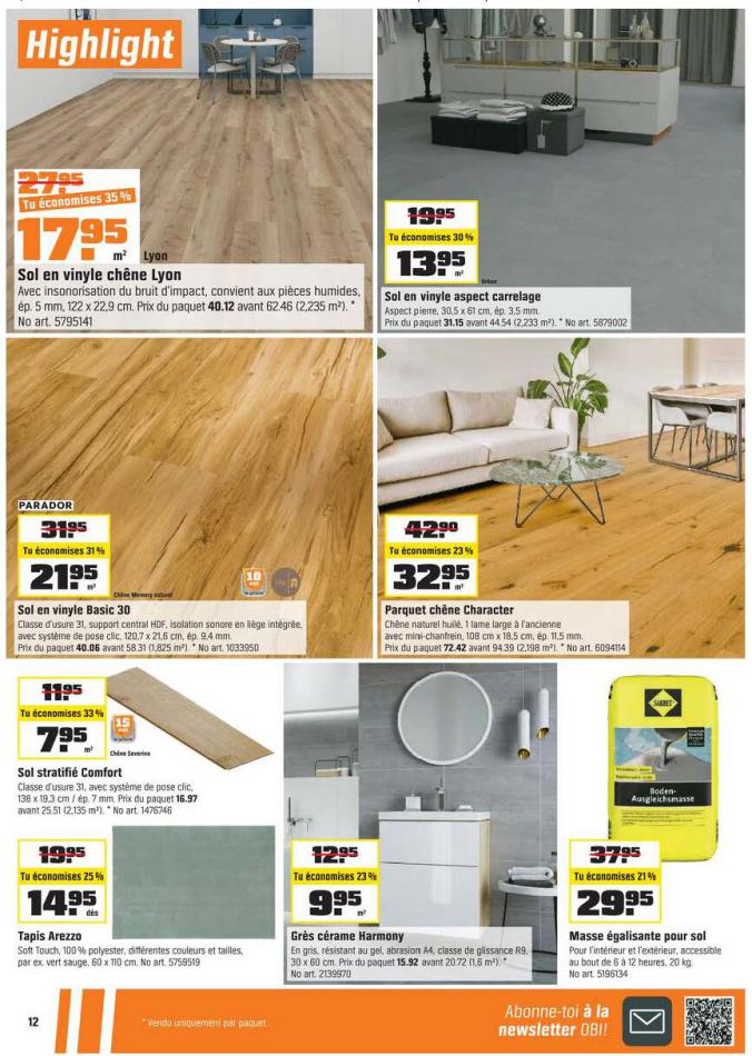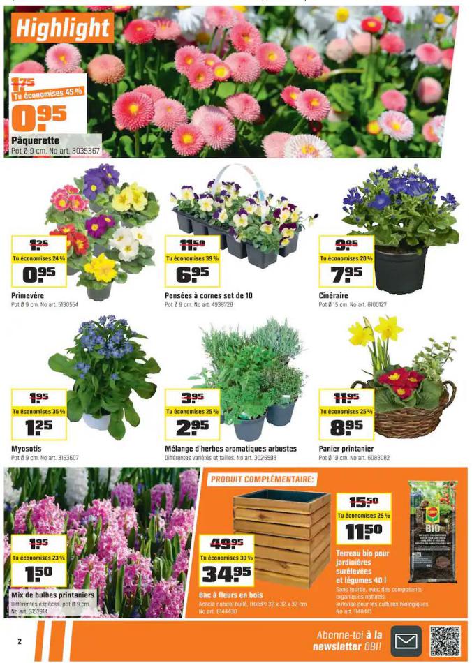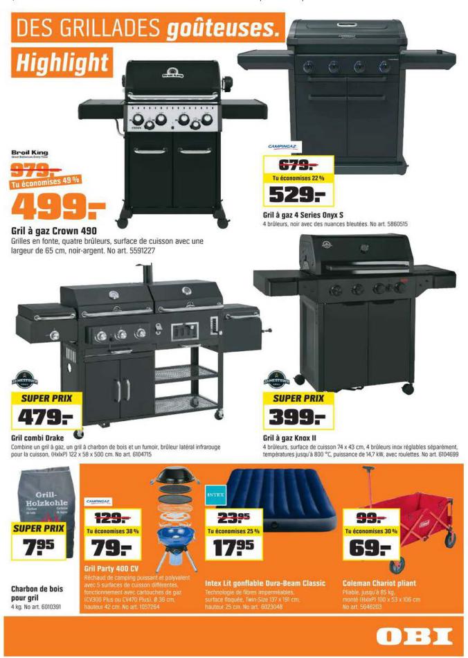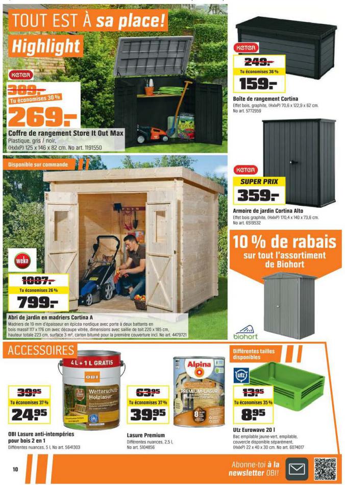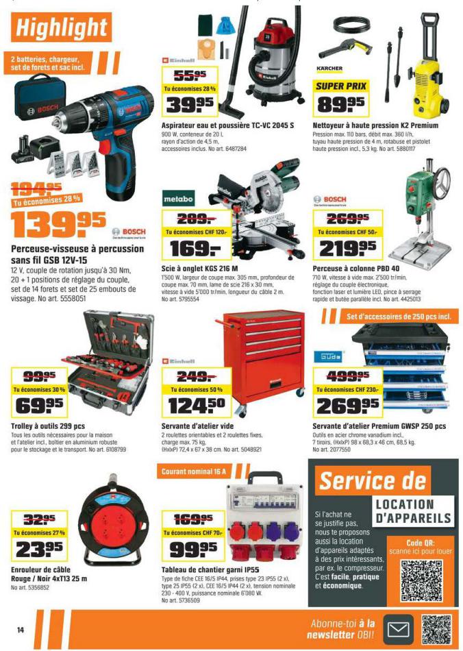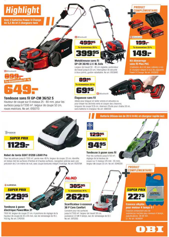 Vous trouverez ici toutes les ⚡ informations concernant les offres OBI en cours, assortiment ainsi que horaire d'ouverture. Voir folder des promotions valable de 01 mars au 18 mars, vérifier les heures d'ouverture et adresses du réseau des magasins OBI. Retrouvez les promotions et folders de OBI maintenant et créez votre sélection des produits. ⚡ Ne ratez aucune bonne affaire et préparez vos achats en ligne. Faites vos économies pendant toute l'année et restez informé des dernières offres et remises chez OBI.