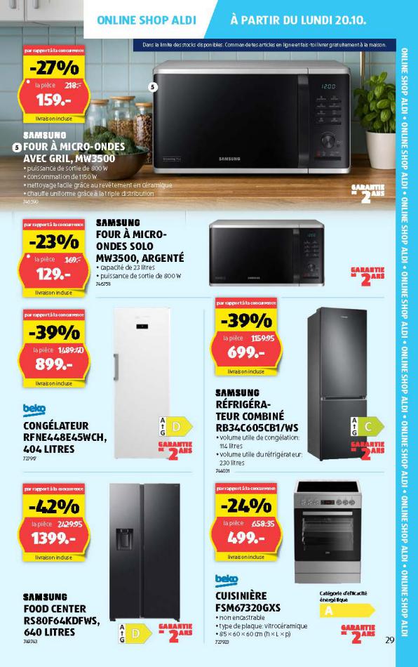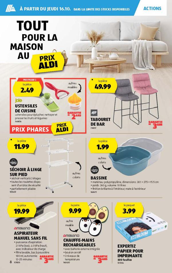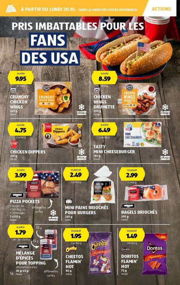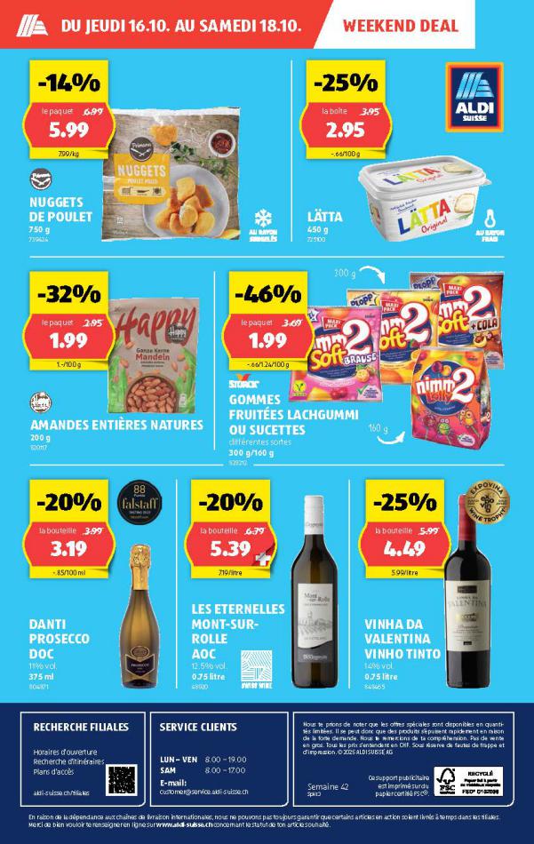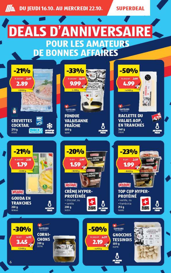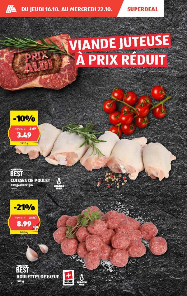 Vous trouverez ici toutes les ⚡ informations concernant les offres Aldi en cours, assortiment ainsi que horaire d'ouverture. Voir folder des promotions valable de 16 octobre au 22 octobre, vérifier les heures d'ouverture et adresses du réseau des magasins Aldi. Retrouvez les promotions et folders de Aldi maintenant et créez votre sélection des produits. ⚡ Ne ratez aucune bonne affaire et préparez vos achats en ligne. Faites vos économies pendant toute l'année et restez informé des dernières offres et remises chez Aldi.