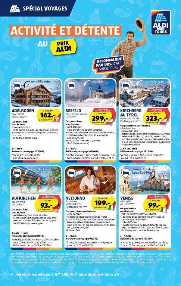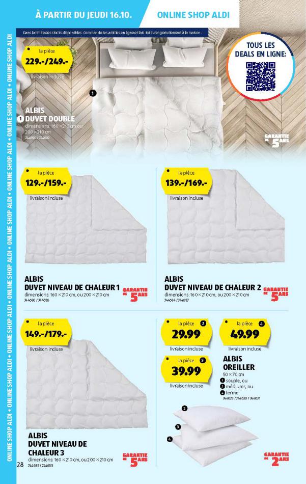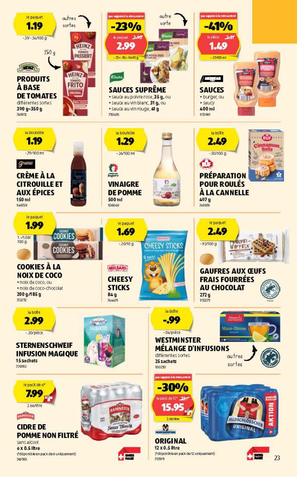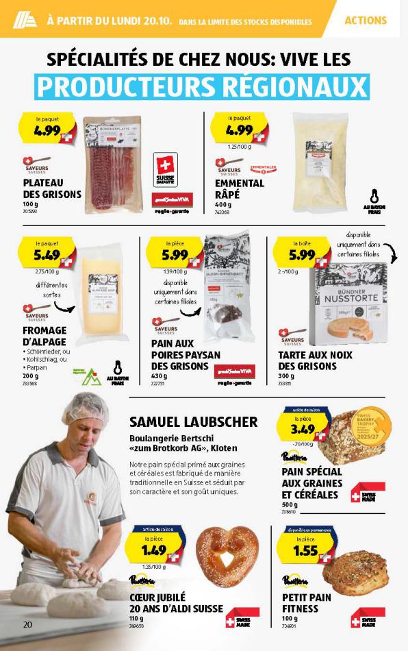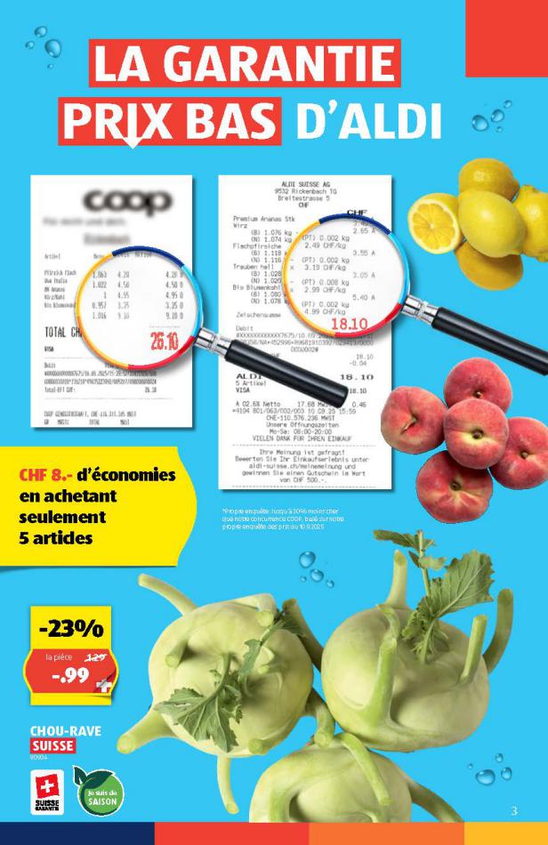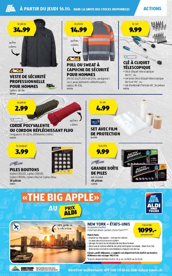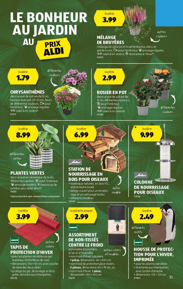Vous trouverez ici toutes les ⚡ informations concernant les offres Aldi en cours, assortiment ainsi que horaire d'ouverture. Voir folder des promotions valable de 16 octobre au 22 octobre, vérifier les heures d'ouverture et adresses du réseau des magasins Aldi. Retrouvez les promotions et folders de Aldi maintenant et créez votre sélection des produits. ⚡ Ne ratez aucune bonne affaire et préparez vos achats en ligne. Faites vos économies pendant toute l'année et restez informé des dernières offres et remises chez Aldi.
