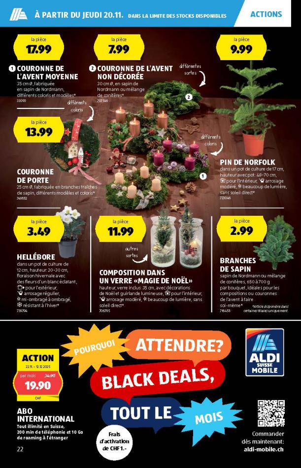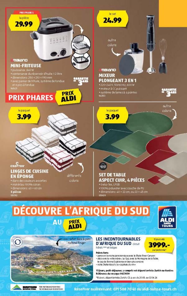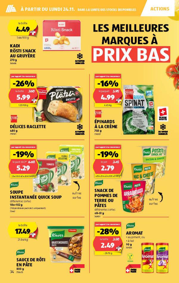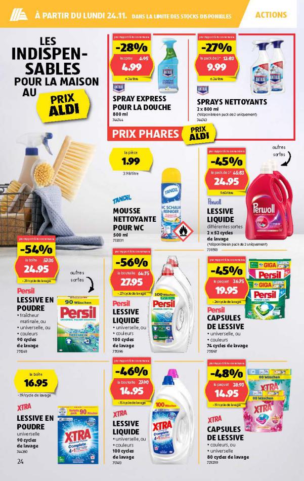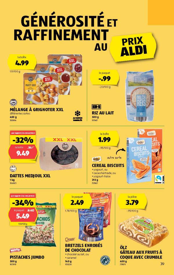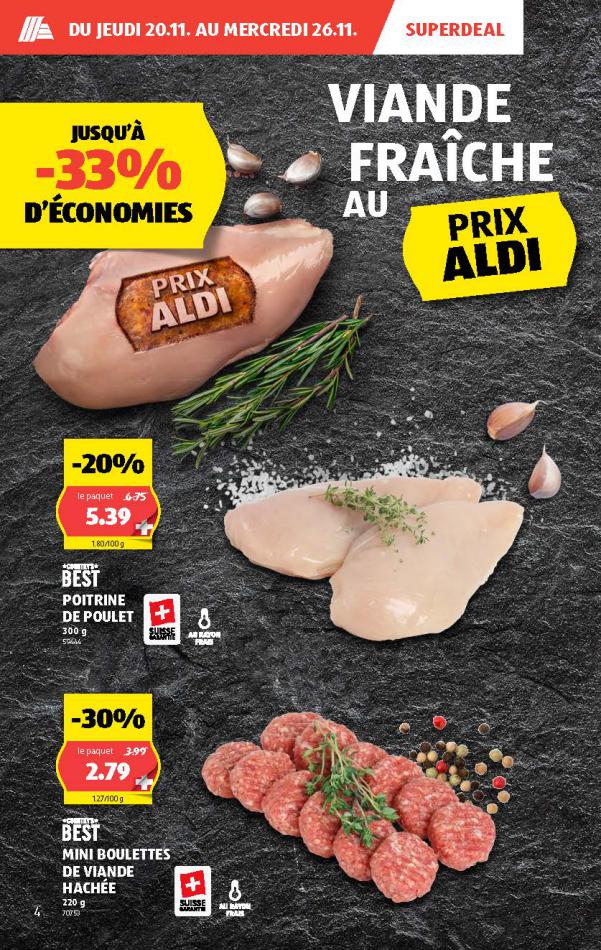 Vous trouverez ici toutes les ⚡ informations concernant les offres Aldi en cours, assortiment ainsi que horaire d'ouverture. Voir folder des promotions valable de 20 novembre au 26 novembre, vérifier les heures d'ouverture et adresses du réseau des magasins Aldi. Retrouvez les promotions et folders de Aldi maintenant et créez votre sélection des produits. ⚡ Ne ratez aucune bonne affaire et préparez vos achats en ligne. Faites vos économies pendant toute l'année et restez informé des dernières offres et remises chez Aldi.