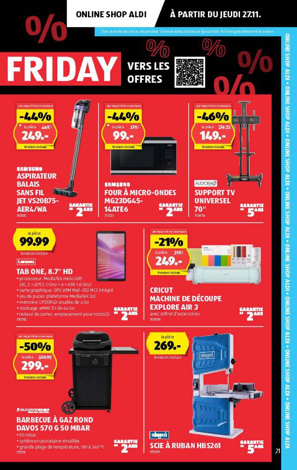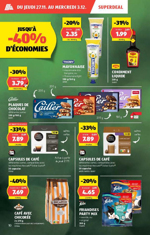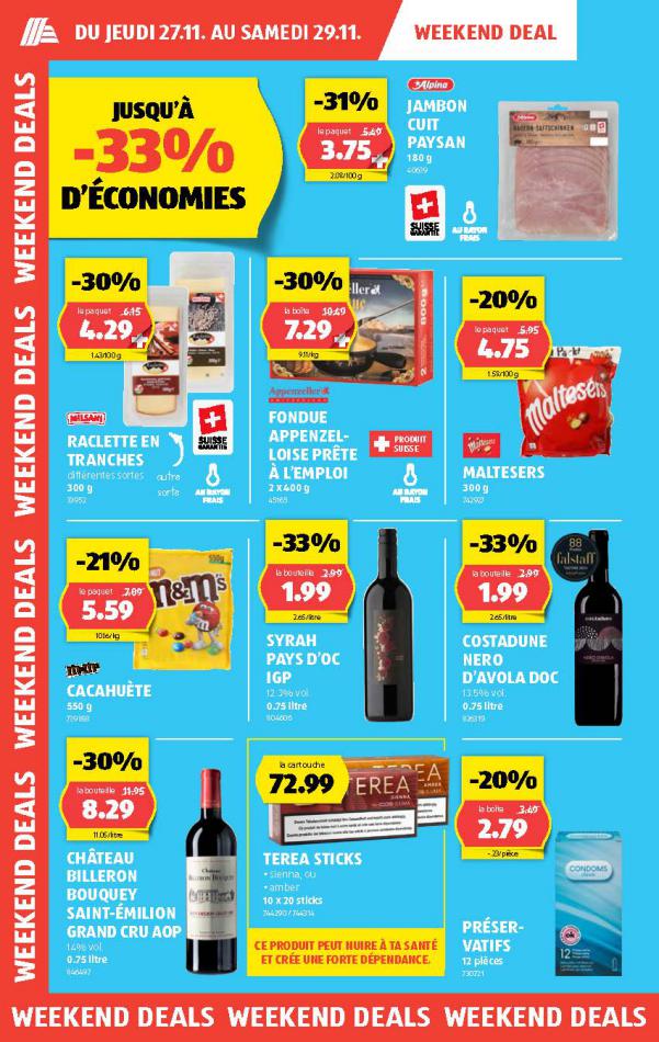 Vous trouverez ici toutes les ⚡ informations concernant les offres Aldi en cours, assortiment ainsi que horaire d'ouverture. Voir folder des promotions valable de 27 novembre au 03 décembre, vérifier les heures d'ouverture et adresses du réseau des magasins Aldi. Retrouvez les promotions et folders de Aldi maintenant et créez votre sélection des produits. ⚡ Ne ratez aucune bonne affaire et préparez vos achats en ligne. Faites vos économies pendant toute l'année et restez informé des dernières offres et remises chez Aldi.