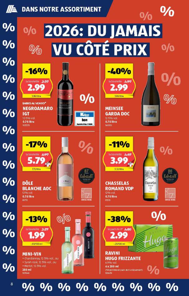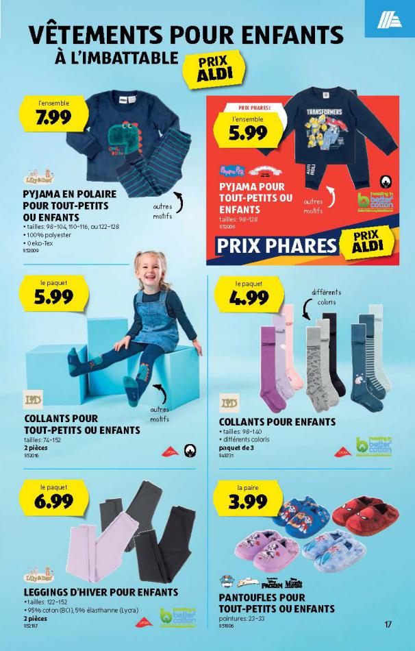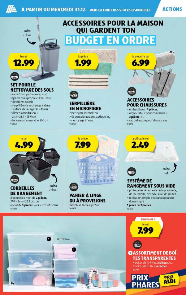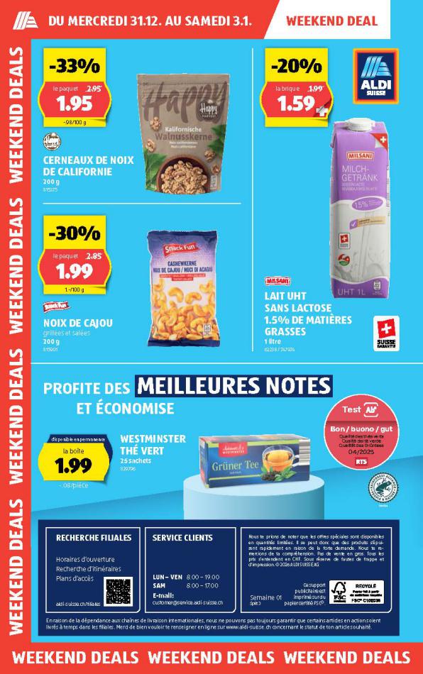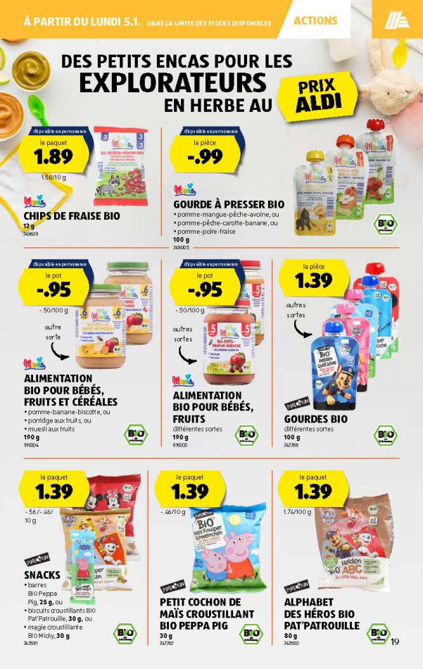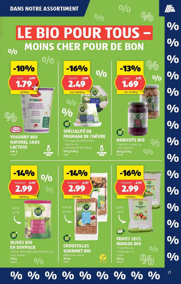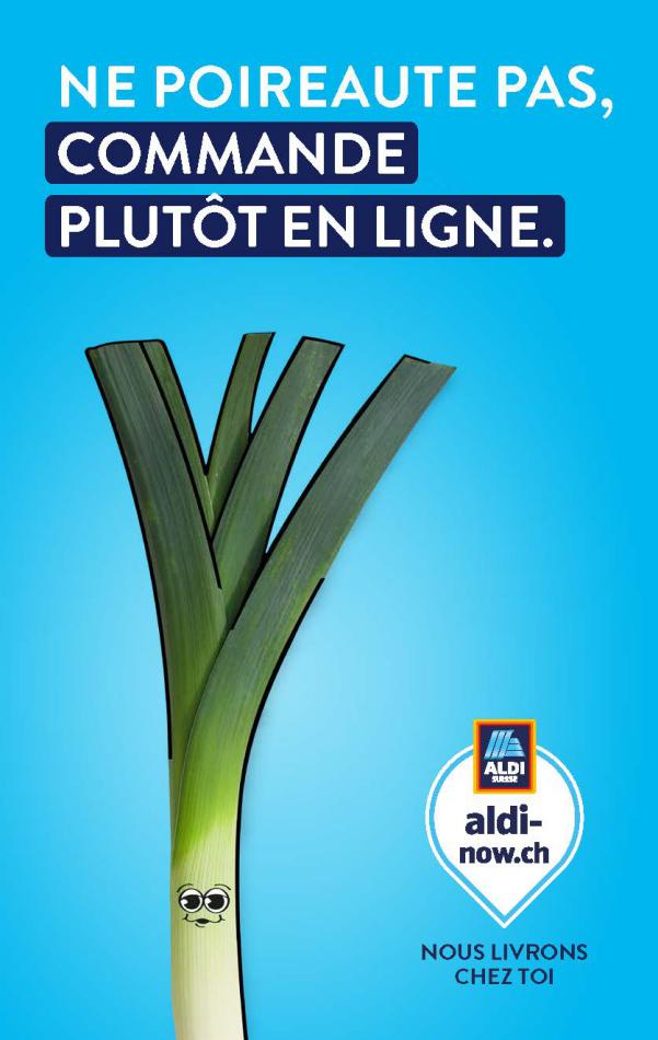 Vous trouverez ici toutes les ⚡ informations concernant les offres Aldi en cours, assortiment ainsi que horaire d'ouverture. Voir folder des promotions valable de 31 décembre au 07 janvier, vérifier les heures d'ouverture et adresses du réseau des magasins Aldi. Retrouvez les promotions et folders de Aldi maintenant et créez votre sélection des produits. ⚡ Ne ratez aucune bonne affaire et préparez vos achats en ligne. Faites vos économies pendant toute l'année et restez informé des dernières offres et remises chez Aldi.