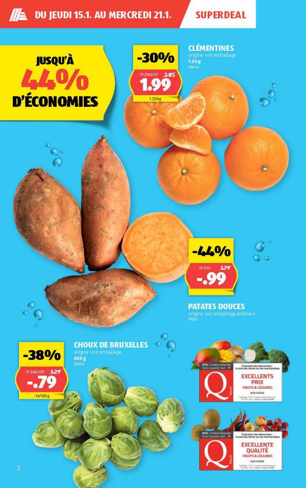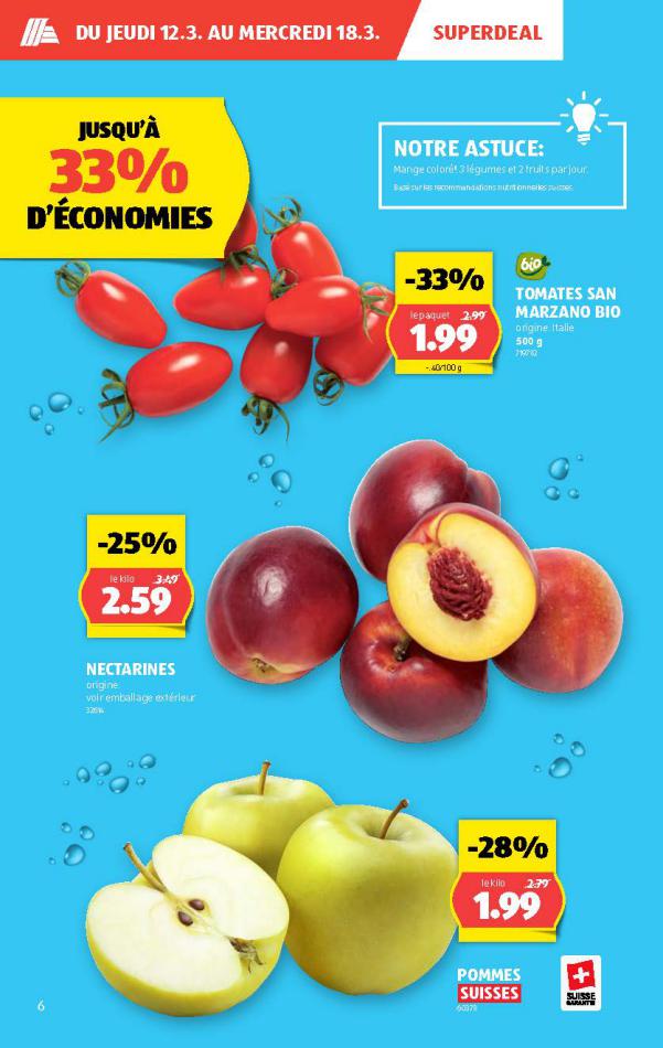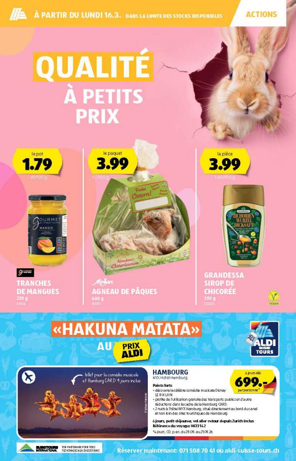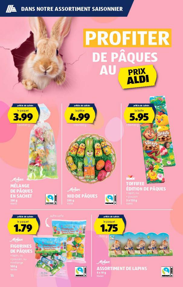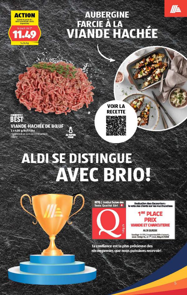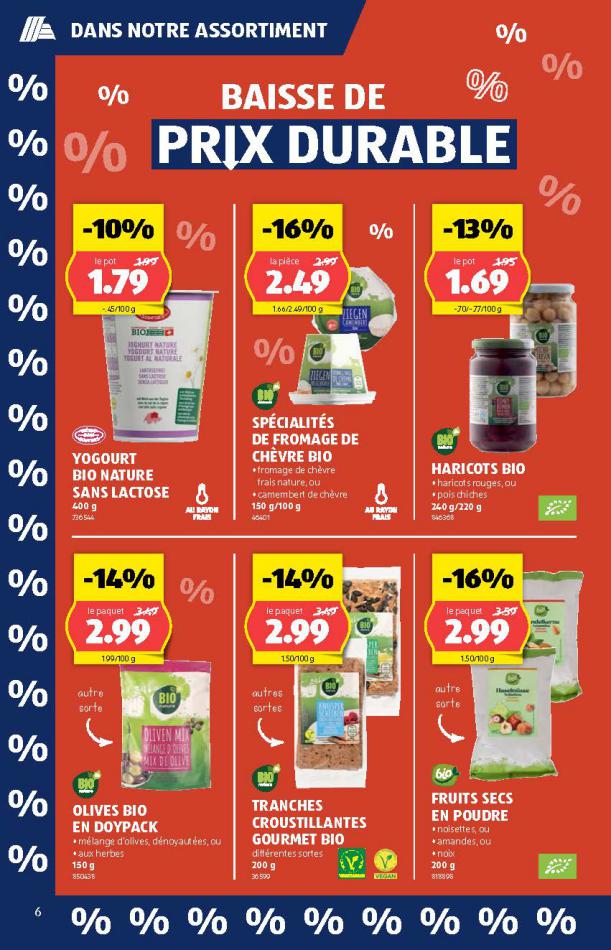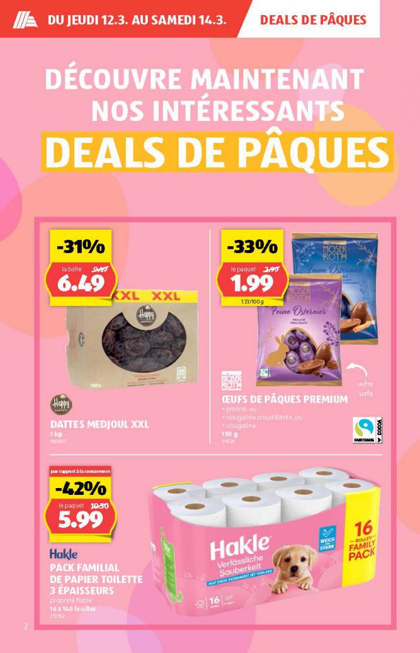 Vous trouverez ici toutes les ⚡ informations concernant les offres Aldi en cours, assortiment ainsi que horaire d'ouverture. Voir folder des promotions valable de 05 mars au 11 mars, vérifier les heures d'ouverture et adresses du réseau des magasins Aldi. Retrouvez les promotions et folders de Aldi maintenant et créez votre sélection des produits. ⚡ Ne ratez aucune bonne affaire et préparez vos achats en ligne. Faites vos économies pendant toute l'année et restez informé des dernières offres et remises chez Aldi.