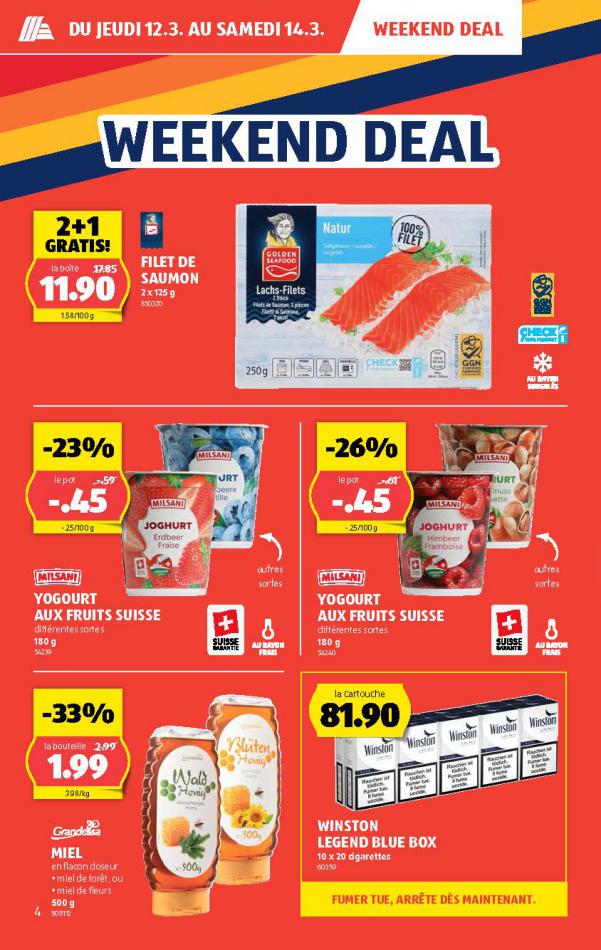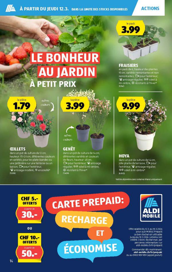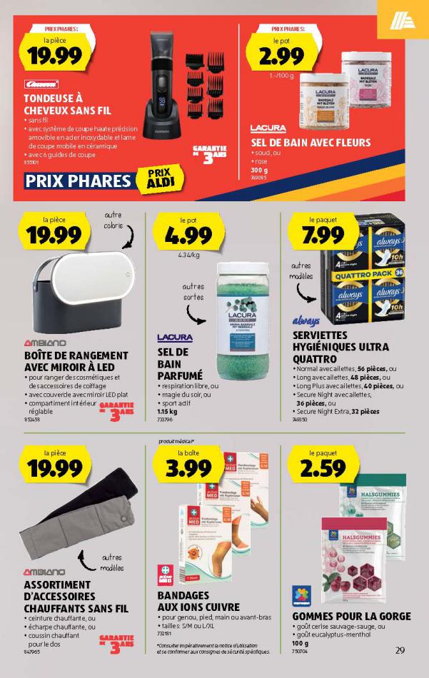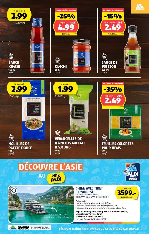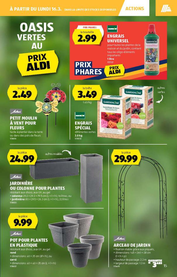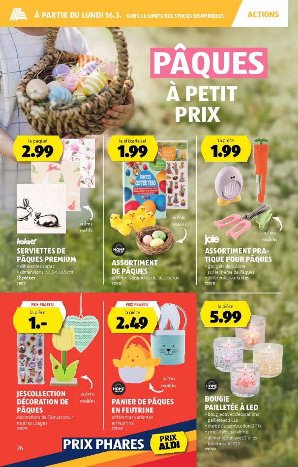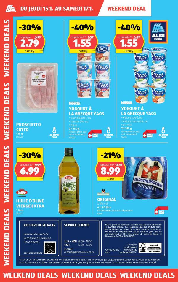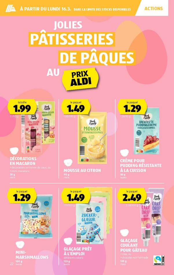 Vous trouverez ici toutes les ⚡ informations concernant les offres Aldi en cours, assortiment ainsi que horaire d'ouverture. Voir folder des promotions valable de 05 mars au 11 mars, vérifier les heures d'ouverture et adresses du réseau des magasins Aldi. Retrouvez les promotions et folders de Aldi maintenant et créez votre sélection des produits. ⚡ Ne ratez aucune bonne affaire et préparez vos achats en ligne. Faites vos économies pendant toute l'année et restez informé des dernières offres et remises chez Aldi.