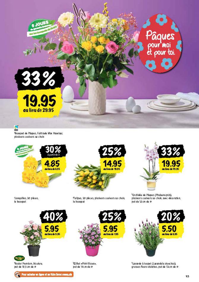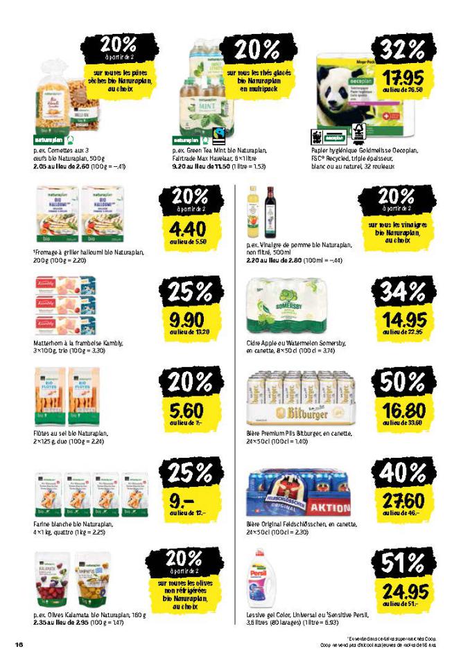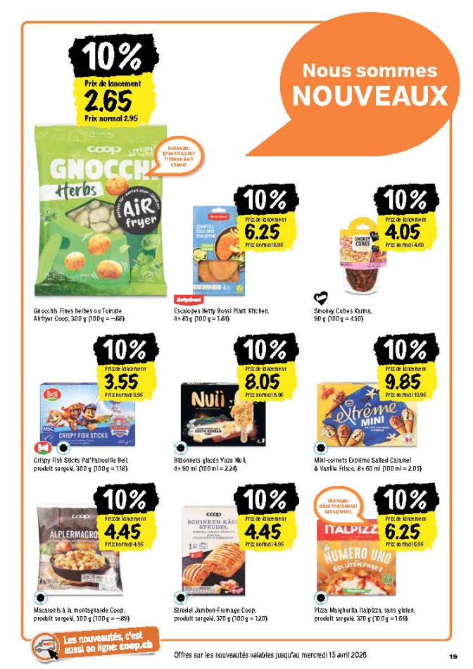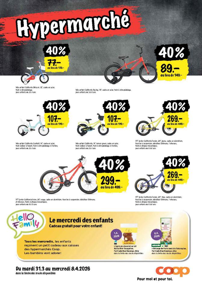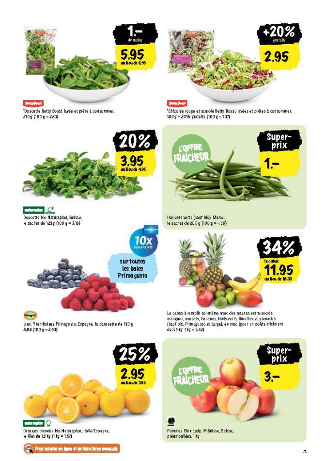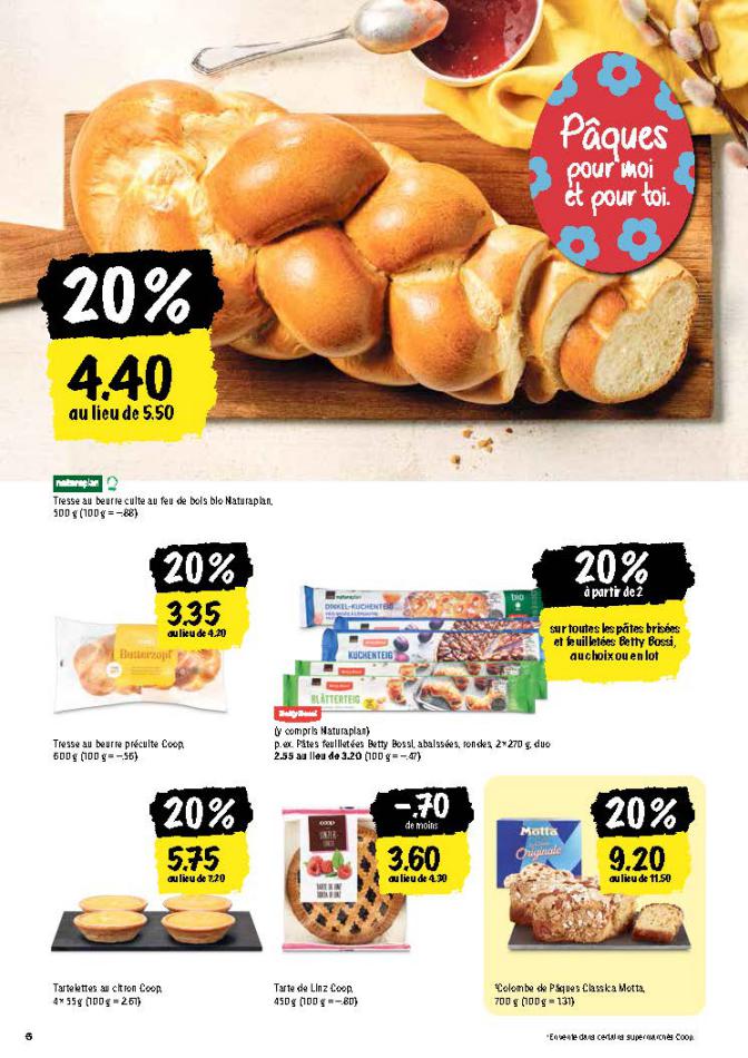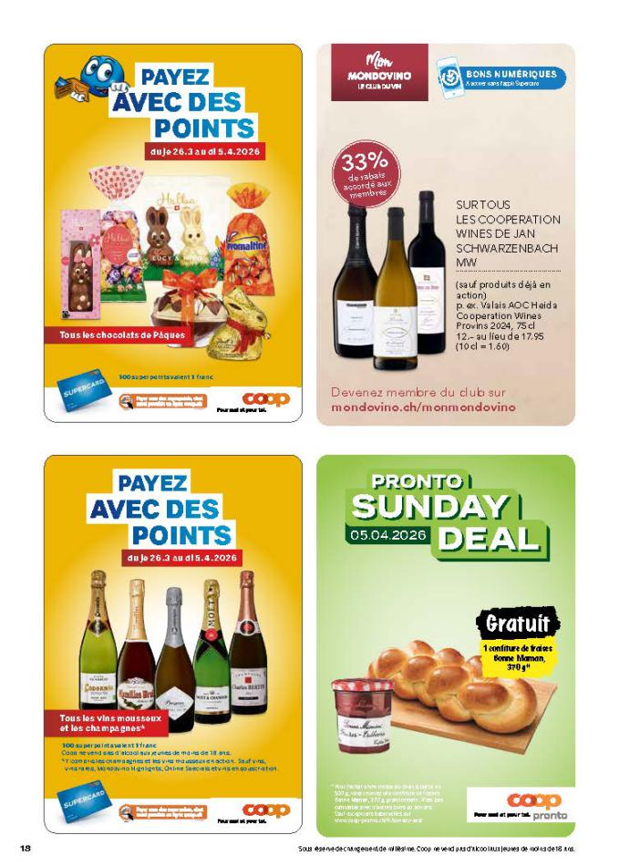 Vous trouverez ici toutes les ⚡ informations concernant les offres Coop en cours, assortiment ainsi que horaire d'ouverture. Voir folder des promotions valable de 02 avril au 08 avril, vérifier les heures d'ouverture et adresses du réseau des magasins Coop. Retrouvez les promotions et folders de Coop maintenant et créez votre sélection des produits. ⚡ Ne ratez aucune bonne affaire et préparez vos achats en ligne. Faites vos économies pendant toute l'année et restez informé des dernières offres et remises chez Coop.