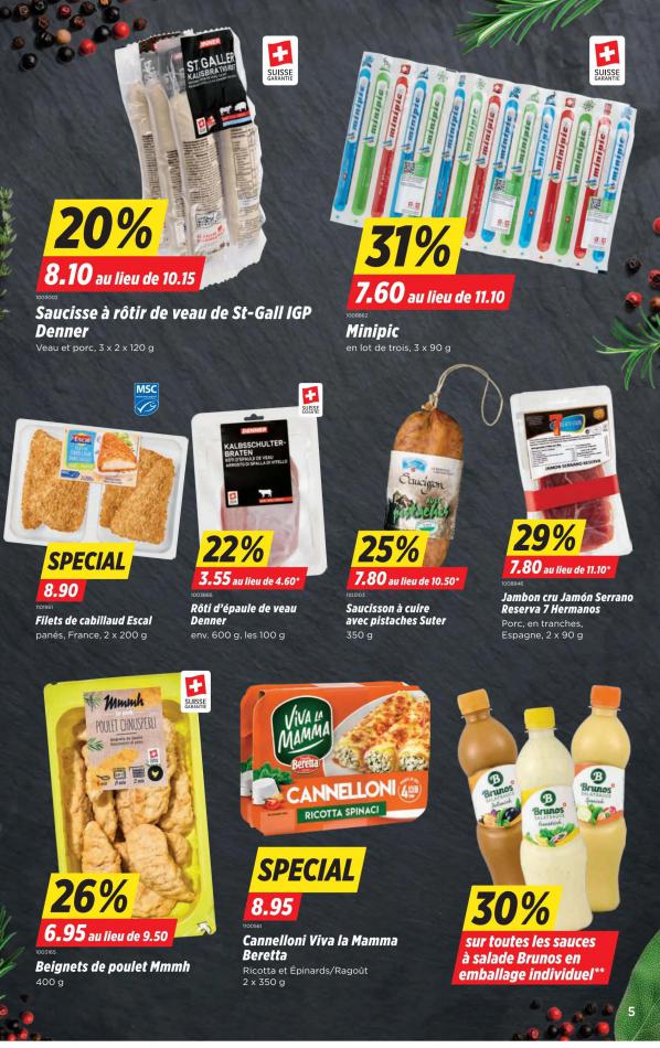 Vous trouverez ici toutes les ⚡ informations concernant les offres Denner en cours, assortiment ainsi que horaire d'ouverture. Voir folder des promotions valable de 12 novembre au 17 novembre, vérifier les heures d'ouverture et adresses du réseau des magasins Denner. Retrouvez les promotions et folders de Denner maintenant et créez votre sélection des produits. ⚡ Ne ratez aucune bonne affaire et préparez vos achats en ligne. Faites vos économies pendant toute l'année et restez informé des dernières offres et remises chez Denner.