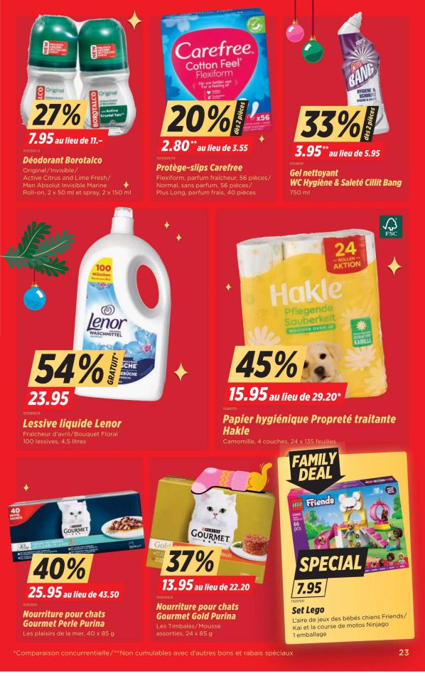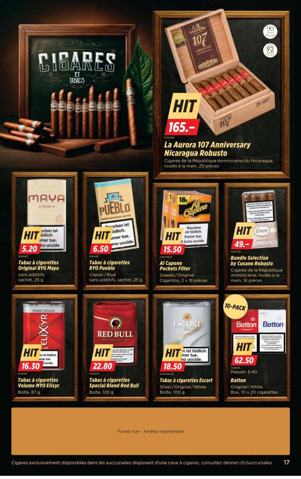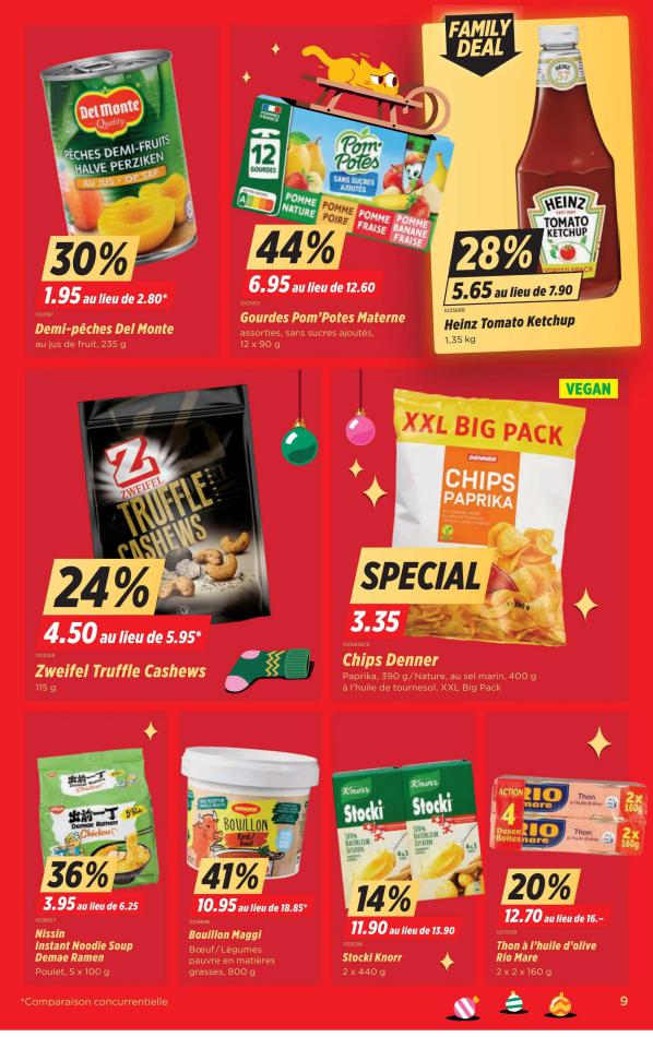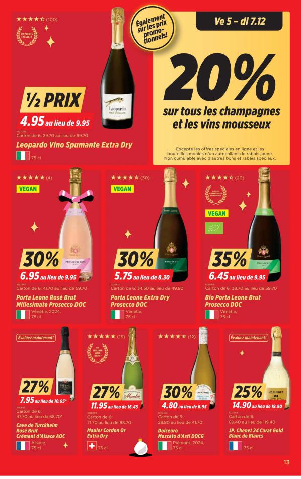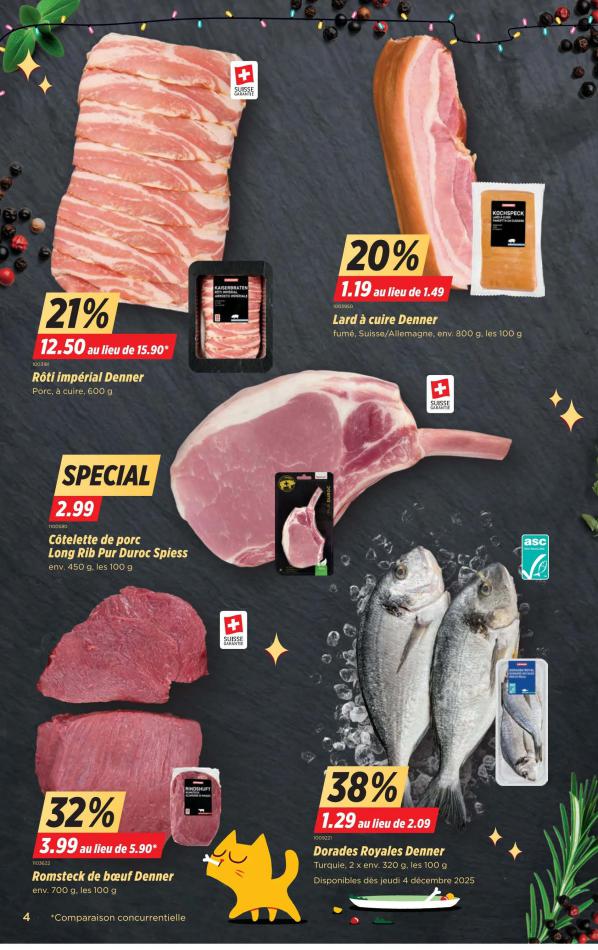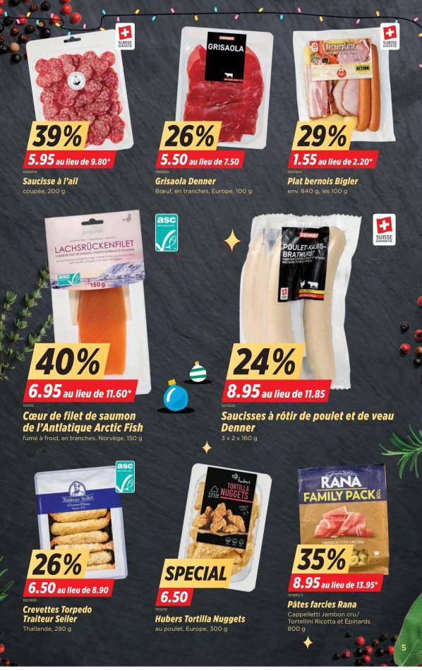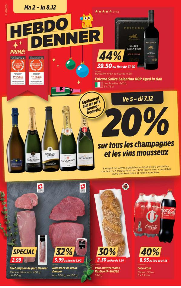 Vous trouverez ici toutes les ⚡ informations concernant les offres Denner en cours, assortiment ainsi que horaire d'ouverture. Voir folder des promotions valable de 02 décembre au 08 décembre, vérifier les heures d'ouverture et adresses du réseau des magasins Denner. Retrouvez les promotions et folders de Denner maintenant et créez votre sélection des produits. ⚡ Ne ratez aucune bonne affaire et préparez vos achats en ligne. Faites vos économies pendant toute l'année et restez informé des dernières offres et remises chez Denner.