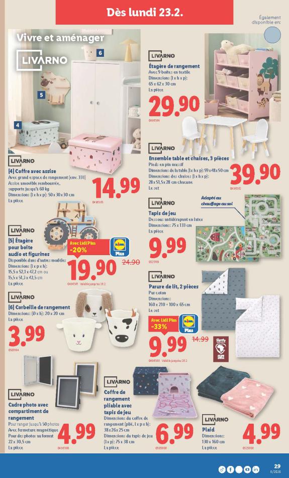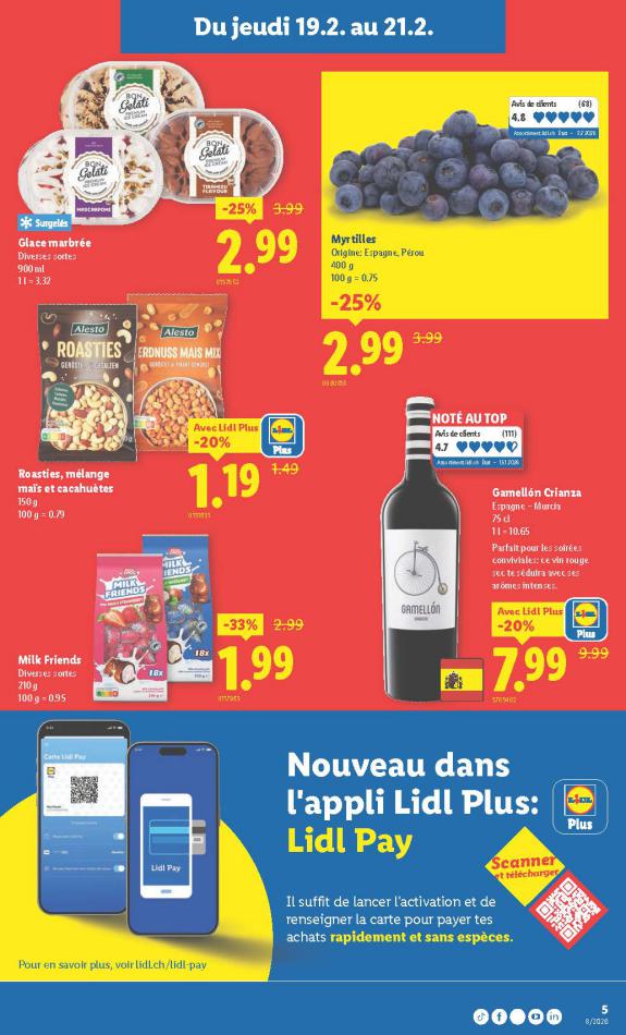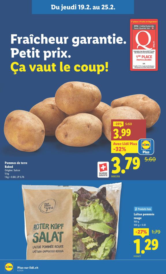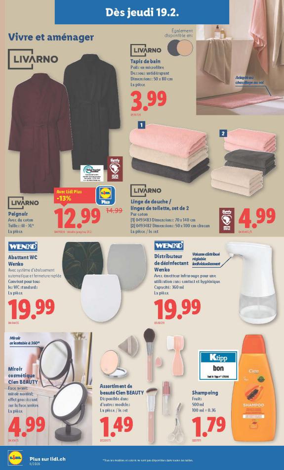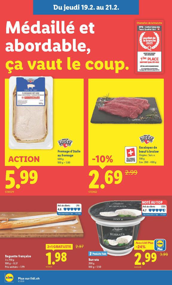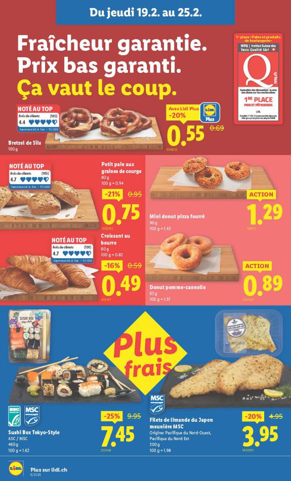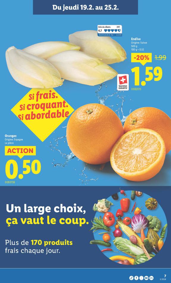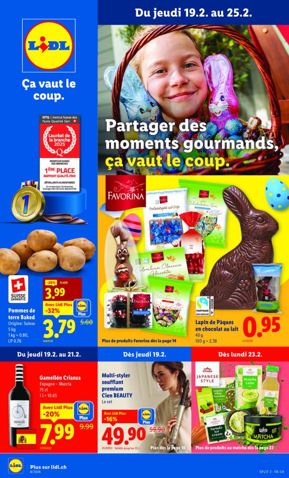 Vous trouverez ici toutes les ⚡ informations concernant les offres Lidl en cours, assortiment ainsi que horaire d'ouverture. Voir folder des promotions valable de 19 février au 25 février, vérifier les heures d'ouverture et adresses du réseau des magasins Lidl. Retrouvez les promotions et folders de Lidl maintenant et créez votre sélection des produits. ⚡ Ne ratez aucune bonne affaire et préparez vos achats en ligne. Faites vos économies pendant toute l'année et restez informé des dernières offres et remises chez Lidl.