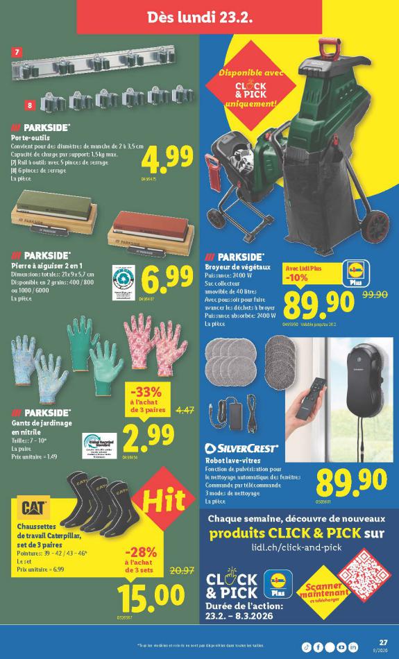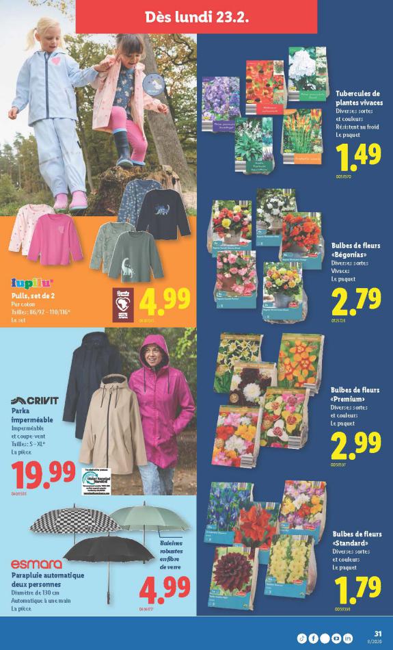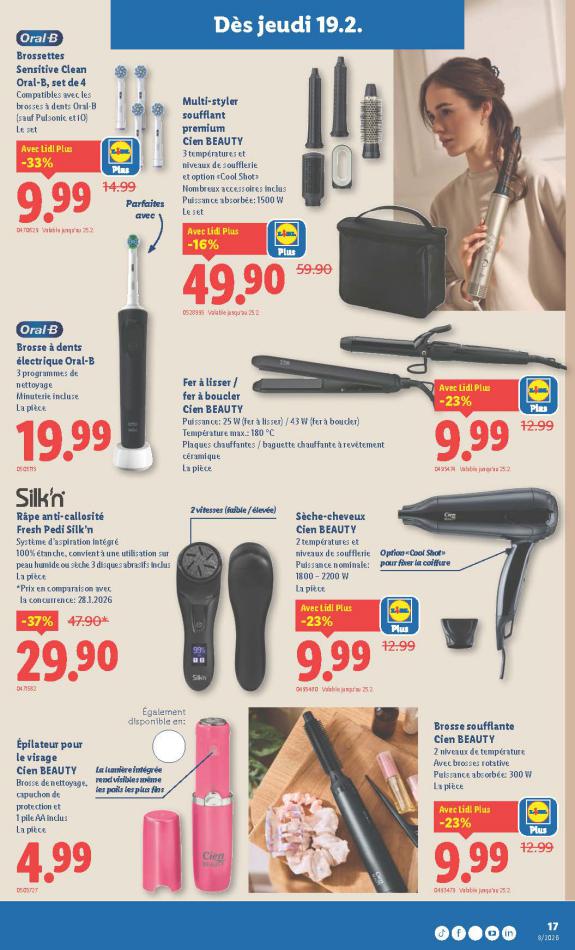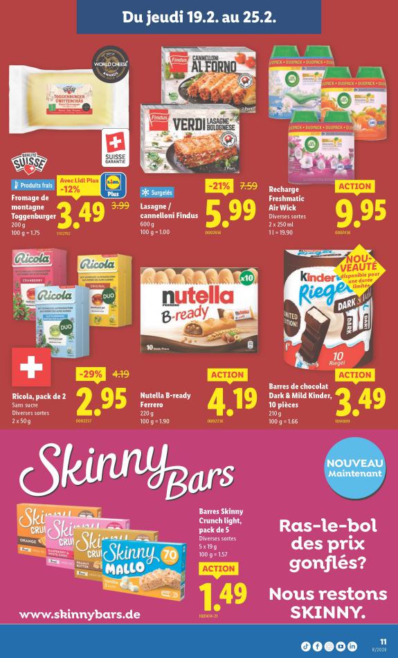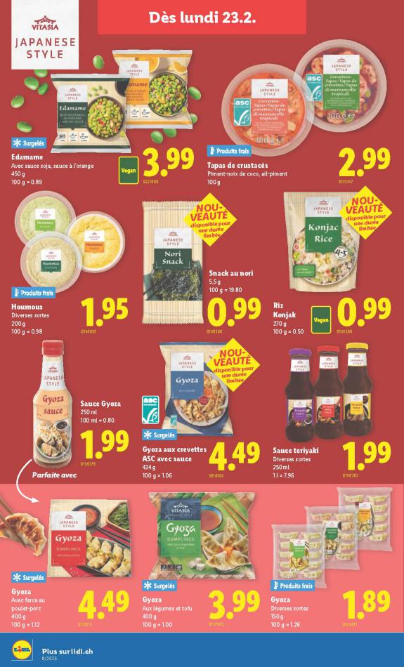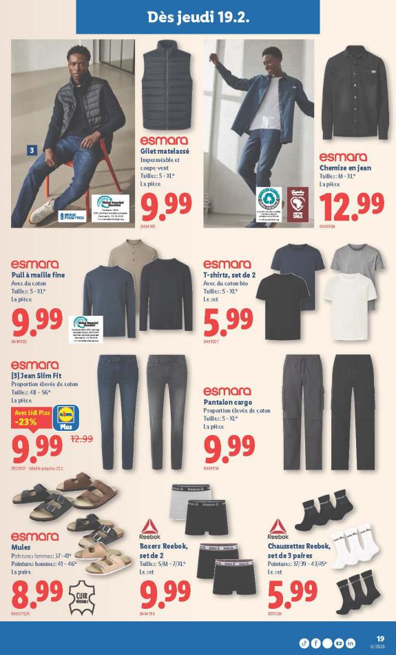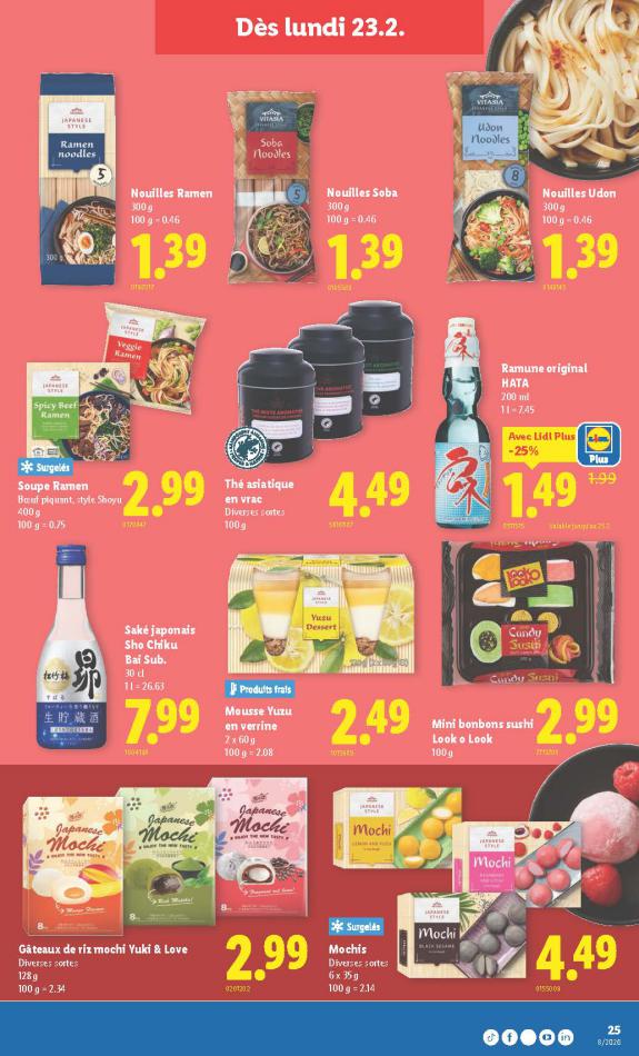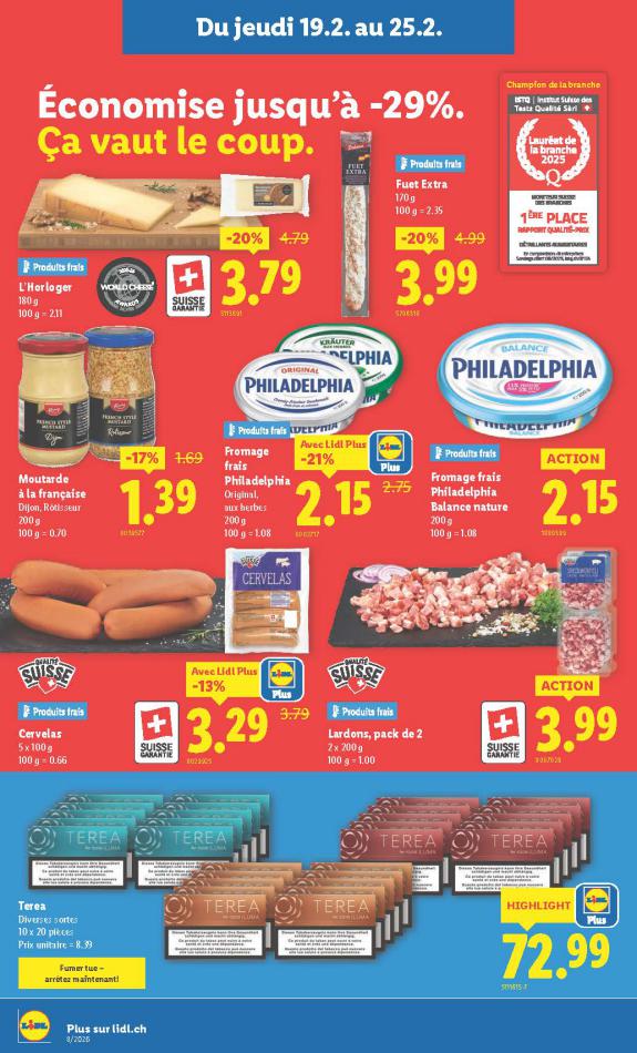 Vous trouverez ici toutes les ⚡ informations concernant les offres Lidl en cours, assortiment ainsi que horaire d'ouverture. Voir folder des promotions valable de 19 février au 25 février, vérifier les heures d'ouverture et adresses du réseau des magasins Lidl. Retrouvez les promotions et folders de Lidl maintenant et créez votre sélection des produits. ⚡ Ne ratez aucune bonne affaire et préparez vos achats en ligne. Faites vos économies pendant toute l'année et restez informé des dernières offres et remises chez Lidl.