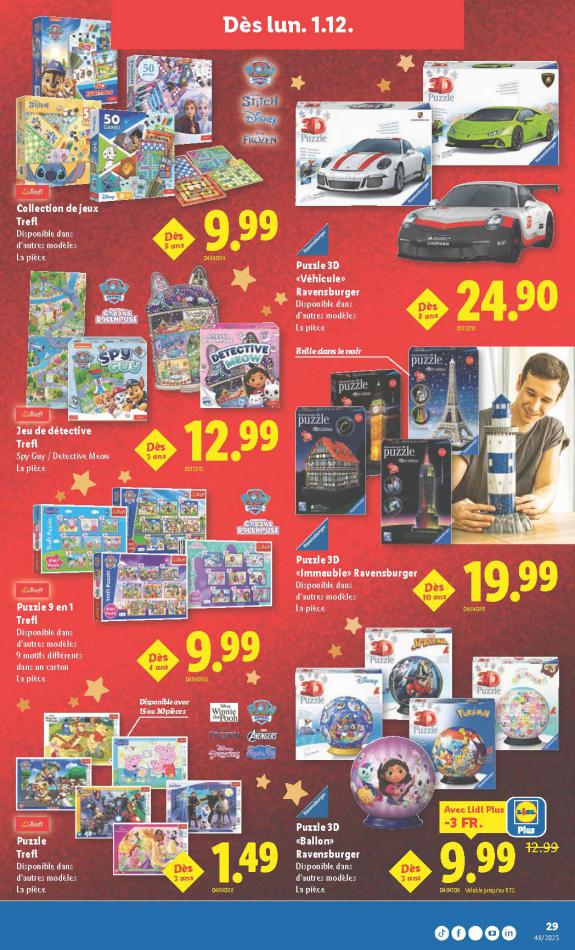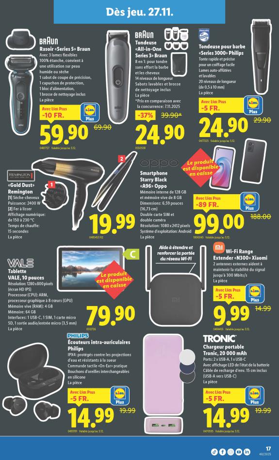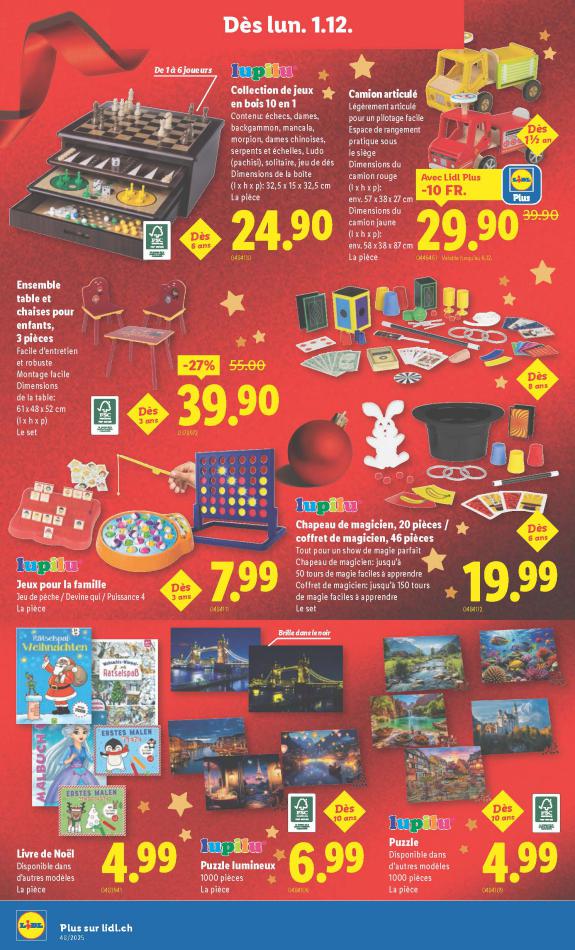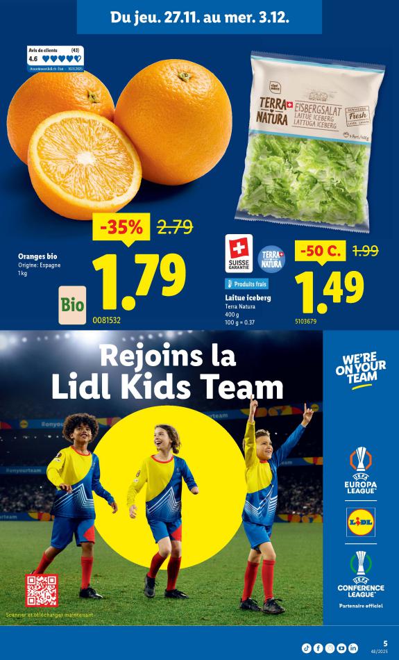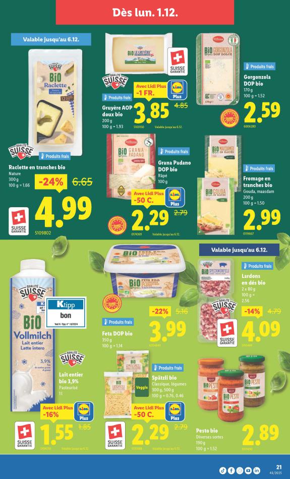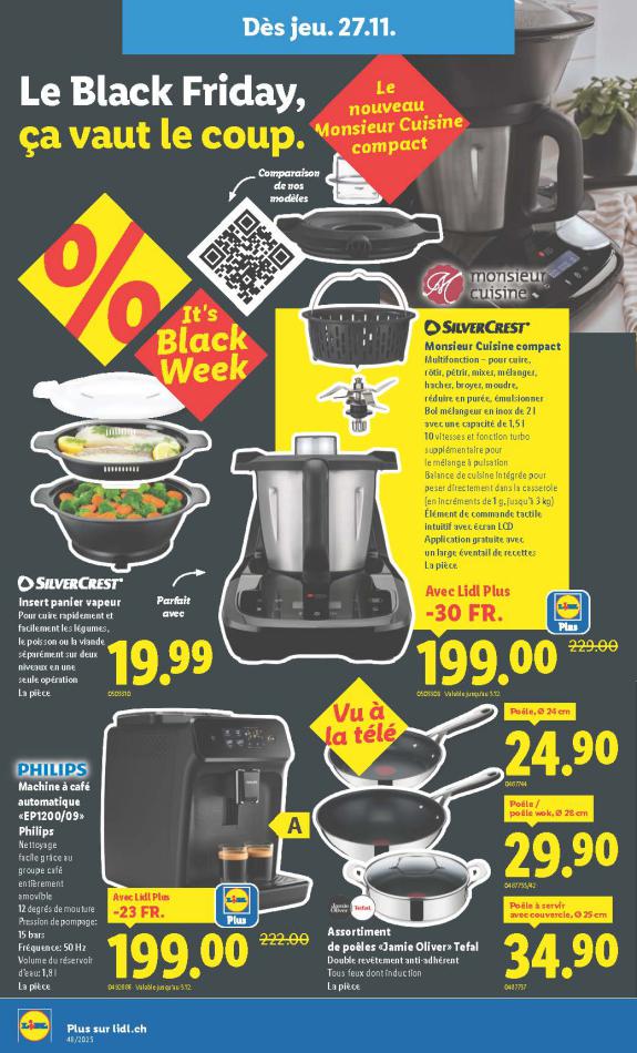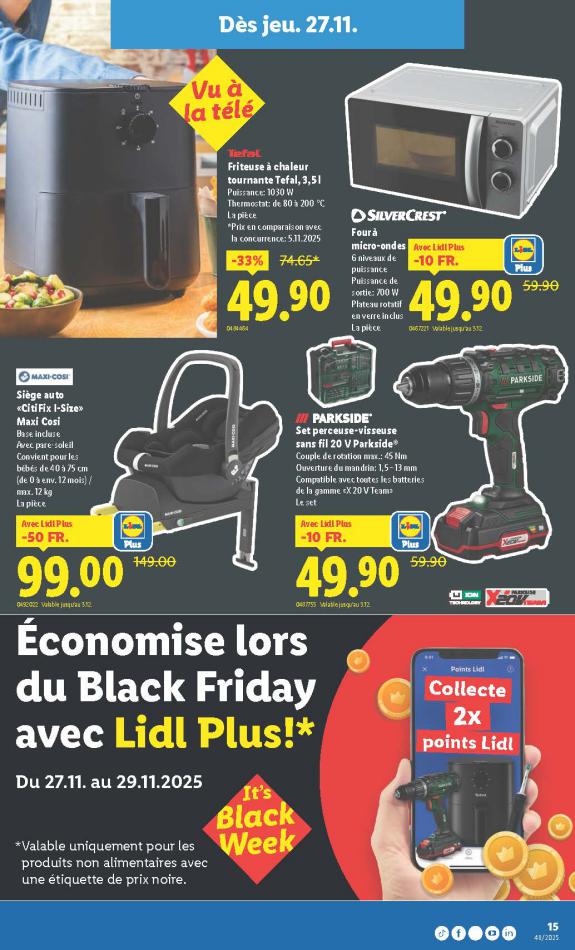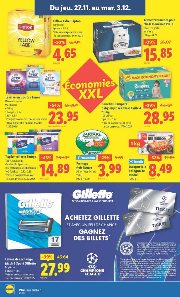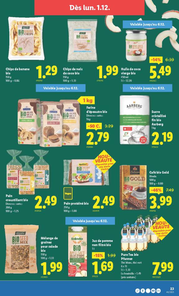 Vous trouverez ici toutes les ⚡ informations concernant les offres Lidl en cours, assortiment ainsi que horaire d'ouverture. Voir folder des promotions valable de 27 novembre au 03 décembre, vérifier les heures d'ouverture et adresses du réseau des magasins Lidl. Retrouvez les promotions et folders de Lidl maintenant et créez votre sélection des produits. ⚡ Ne ratez aucune bonne affaire et préparez vos achats en ligne. Faites vos économies pendant toute l'année et restez informé des dernières offres et remises chez Lidl.