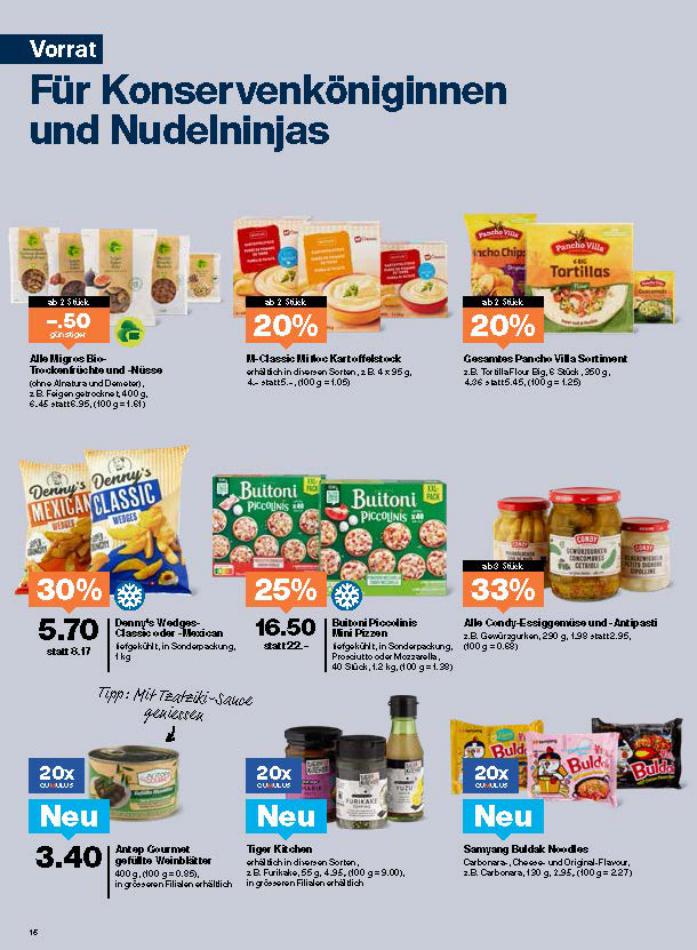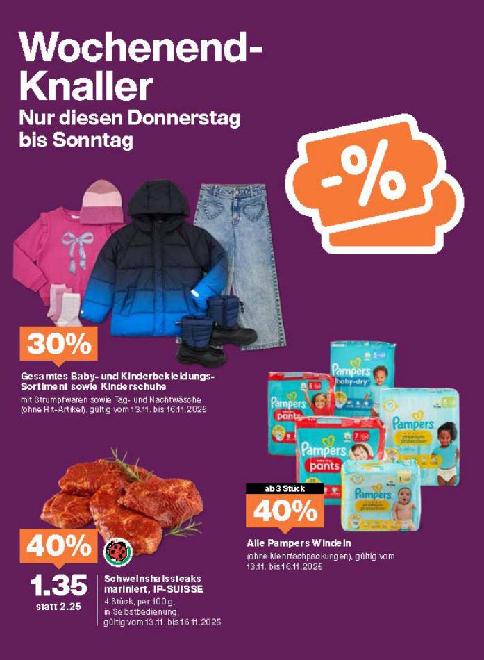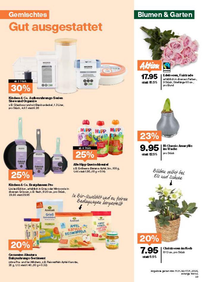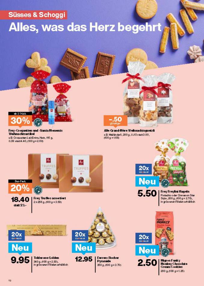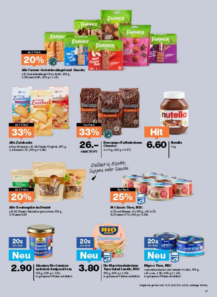 Vous trouverez ici toutes les ⚡ informations concernant les offres Migros en cours, assortiment ainsi que horaire d'ouverture. Voir folder des promotions valable de 12 novembre au 17 novembre, vérifier les heures d'ouverture et adresses du réseau des magasins Migros. Retrouvez les promotions et folders de Migros maintenant et créez votre sélection des produits. ⚡ Ne ratez aucune bonne affaire et préparez vos achats en ligne. Faites vos économies pendant toute l'année et restez informé des dernières offres et remises chez Migros.