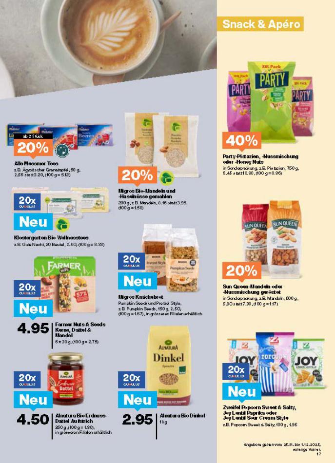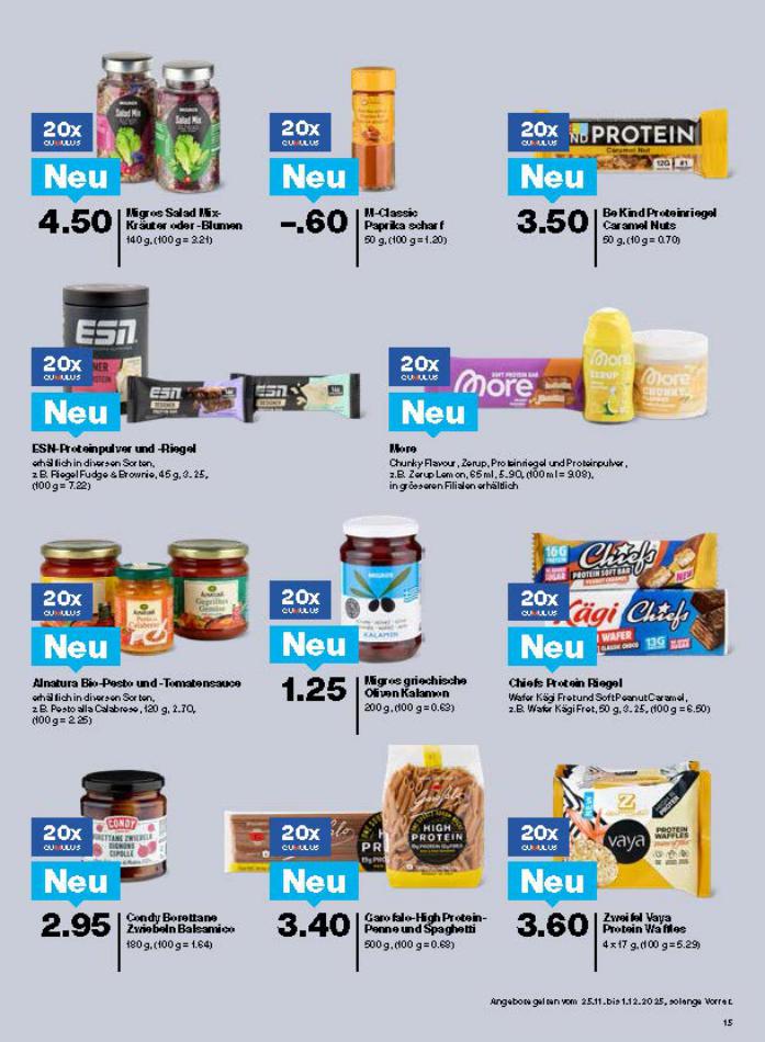 Vous trouverez ici toutes les ⚡ informations concernant les offres Migros en cours, assortiment ainsi que horaire d'ouverture. Voir folder des promotions valable de 25 novembre au 01 décembre, vérifier les heures d'ouverture et adresses du réseau des magasins Migros. Retrouvez les promotions et folders de Migros maintenant et créez votre sélection des produits. ⚡ Ne ratez aucune bonne affaire et préparez vos achats en ligne. Faites vos économies pendant toute l'année et restez informé des dernières offres et remises chez Migros.